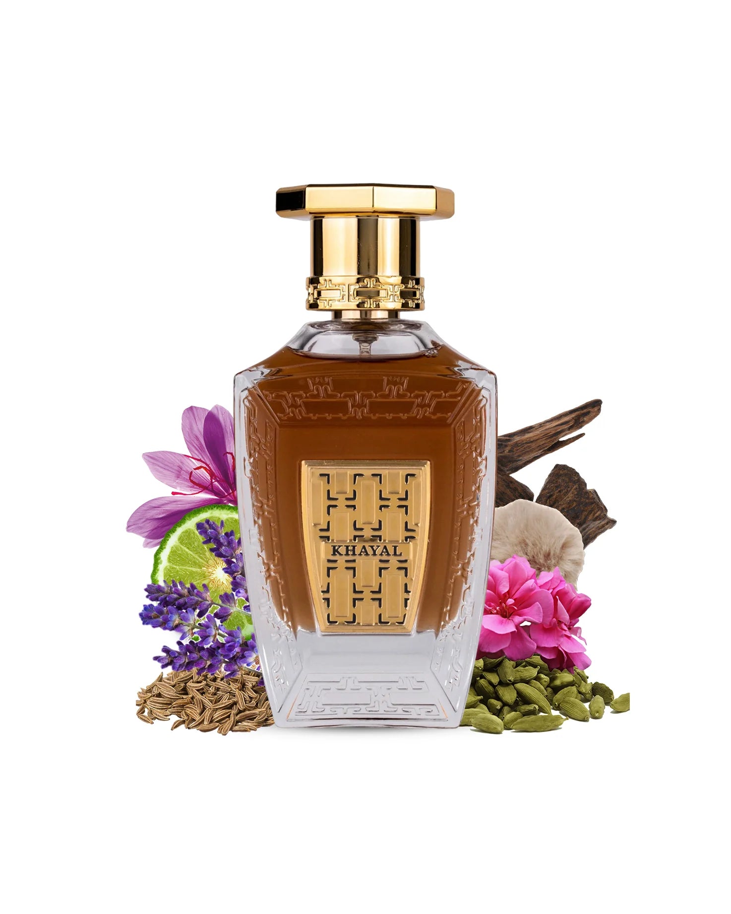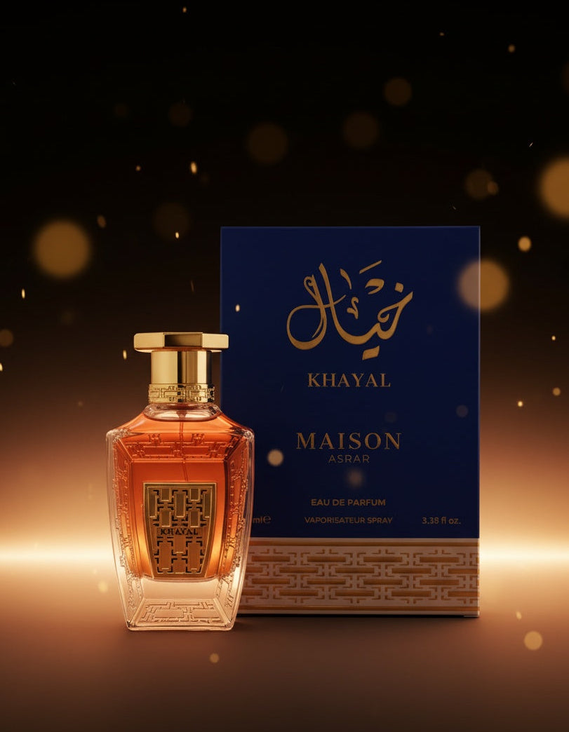 Khayal or “imagination” in Arabic is a bold, authentic and unapologetic fragrance that projects confidence and belief. Cardamom, Bergamot and Geranium form a spicy and dark opening, which merges exquisitely with Patchouli and Saffron to add an extra depth, while the animalic Leather accord creates a warm and inviting bond with the Musk and Oud.