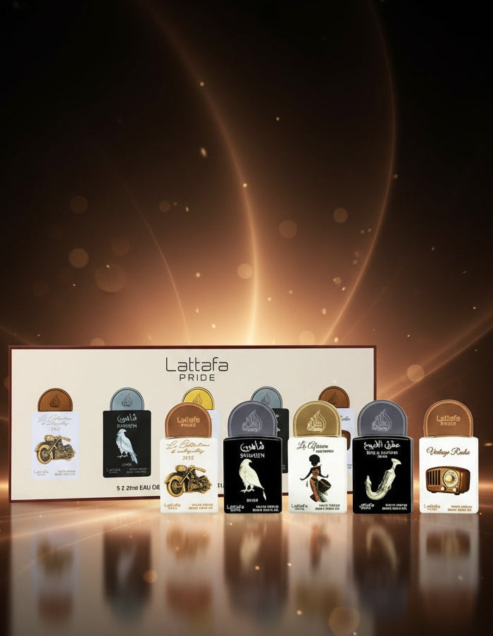 Lattafa Pride No. 05 Giftset Collection is a luxurious perfume set. It contains five different scents in practical 20 ml bottles. This set is designed for lovers of oriental scents and is ideal as a gift or for a personal introduction to the Lattafa Pride brand.