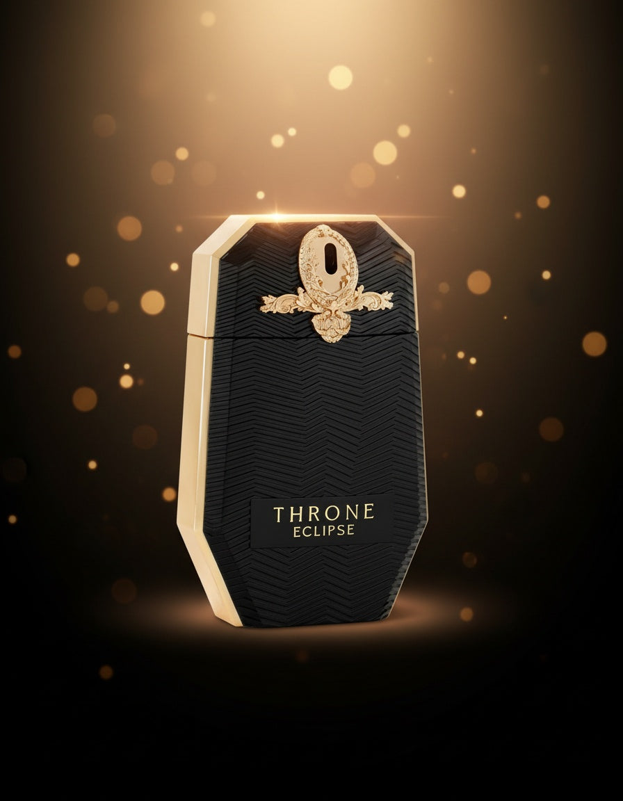 A darker chapter of the crown. Throne Eclipse unfolds with apple and clove, deepened by cinnamon and lavender, settling into a warm ambery trail of vanilla and cedarwood. Elegant, magnetic — the night side of power.